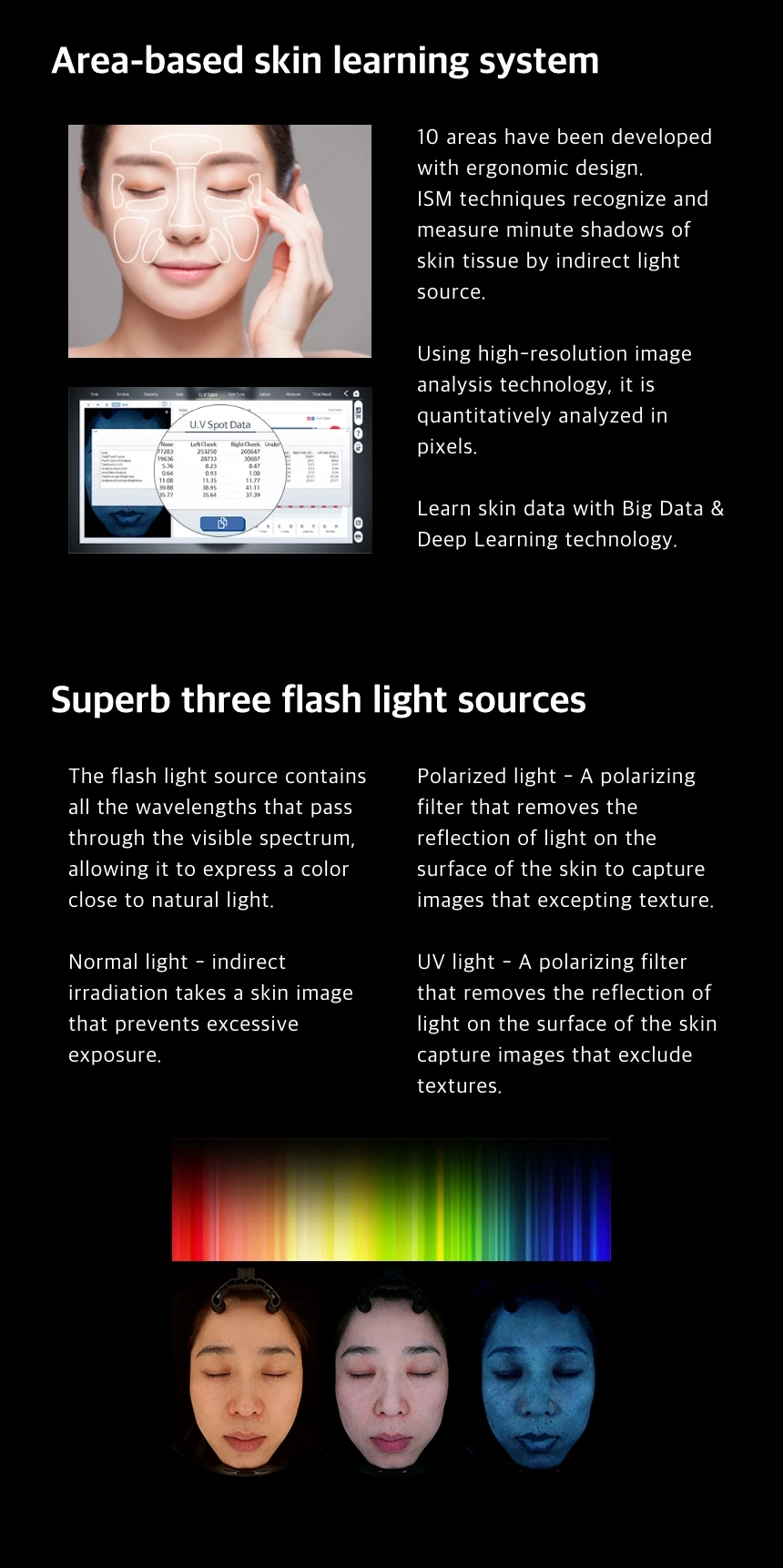 Feature | Acne analysis, Pigmentation analysis, Skin Wrinkle analysis, Detect Skin Moisture |