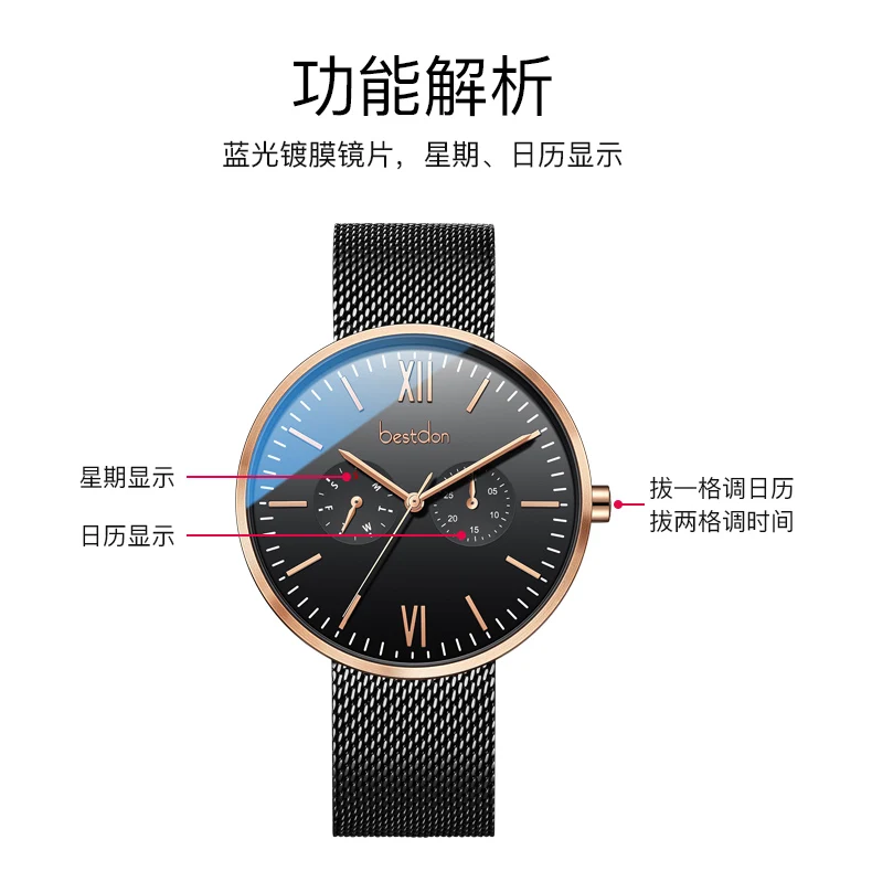 | luxury ip plating stainless steel case | stainless steel mash strap | mineral glass | |