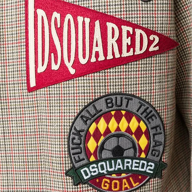 OEM custom mens multi embroidered patches trench coat with adjustable cuffs