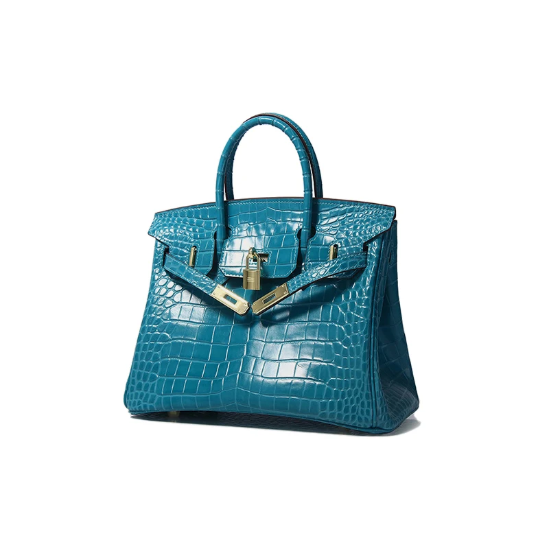 Blue Famous Brand High Quality Luxury Big Capacity Genuine Cowhide Leather Designer Handbag Tote With Crocodile Pattern For Ladies Factory Sell