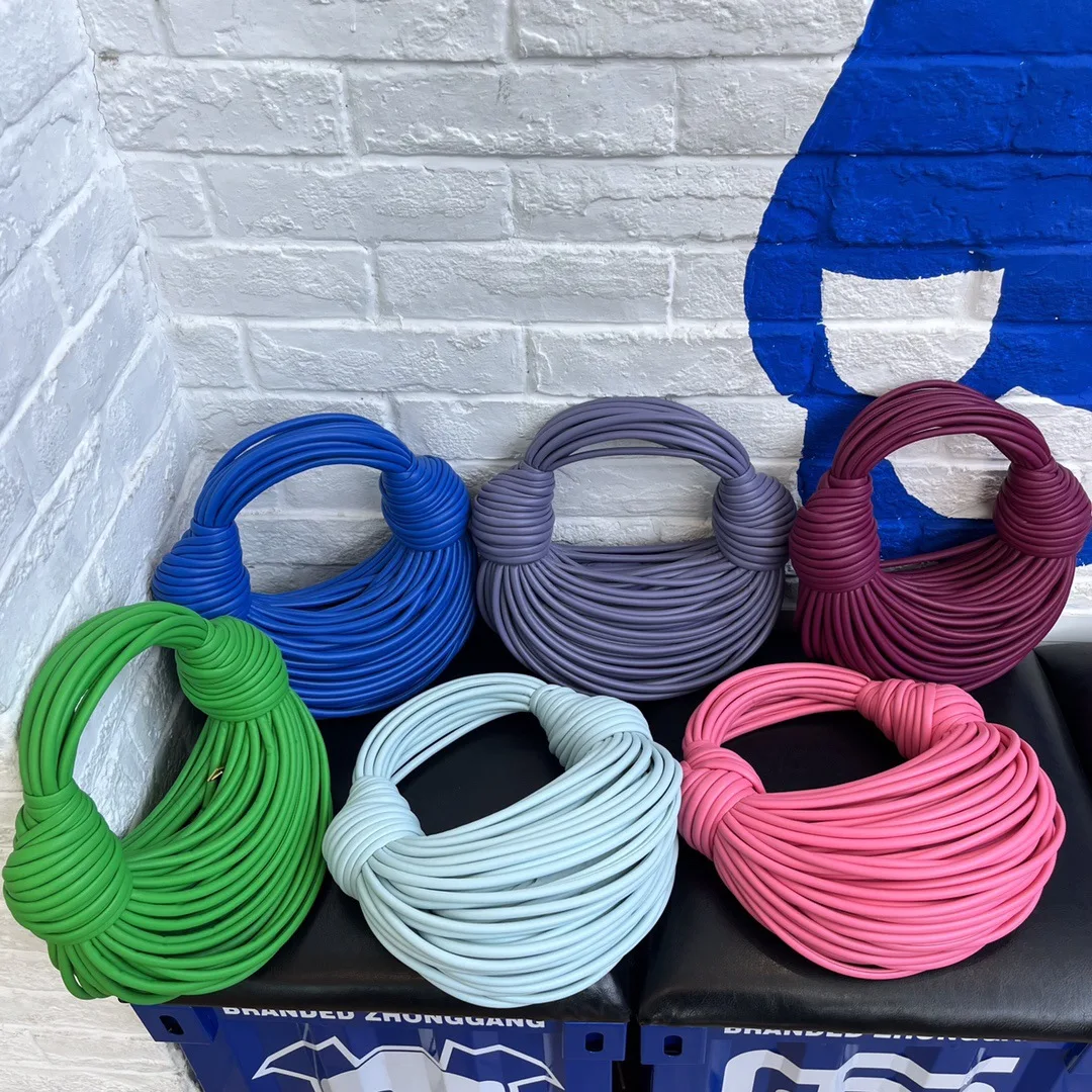 Trendy Luxury Designer Handbags Hand woven Noodle Bags Rope Knotted Pulled Bread Women Genuine Leather Handbags