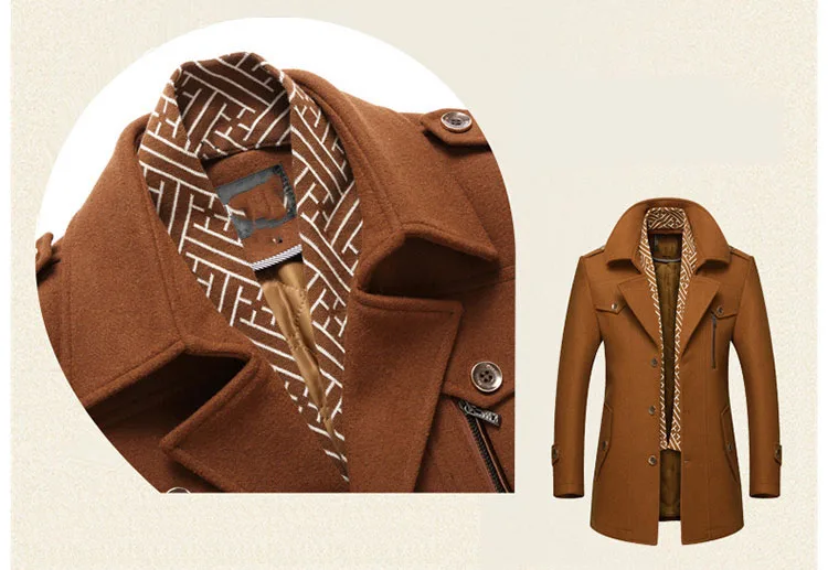 Thick Winter Overcoat 6 Colors Medium Style Men's Gentle Layered Collar Single Breasted Quilted Lined Wool Blend Pea Coats