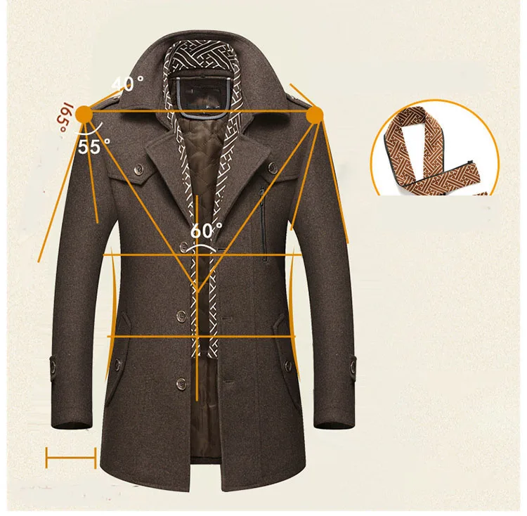 Wholesale customized over coat new styles hot sale long black plus size trench waist coat for men