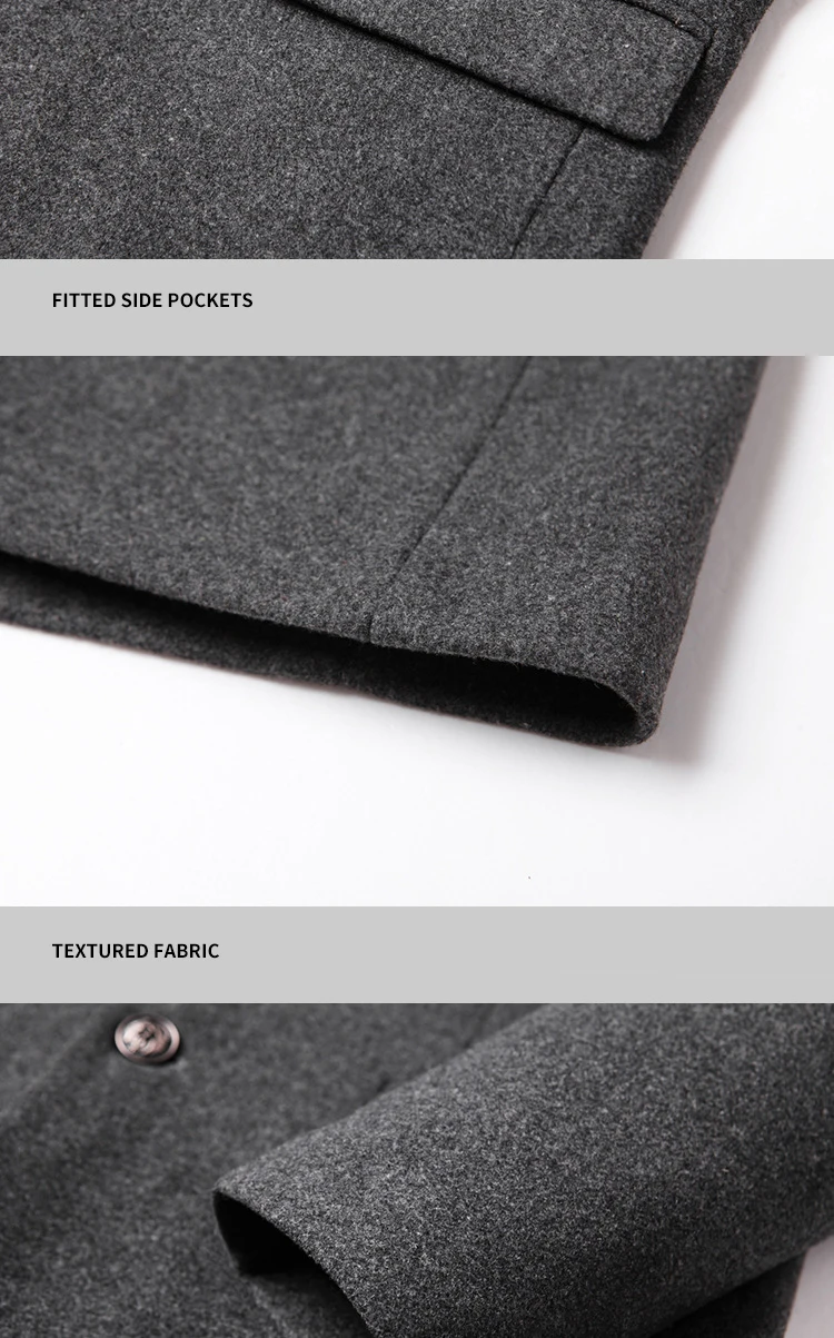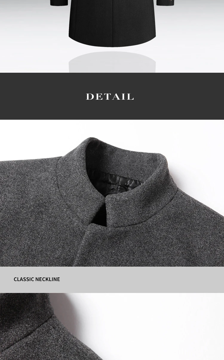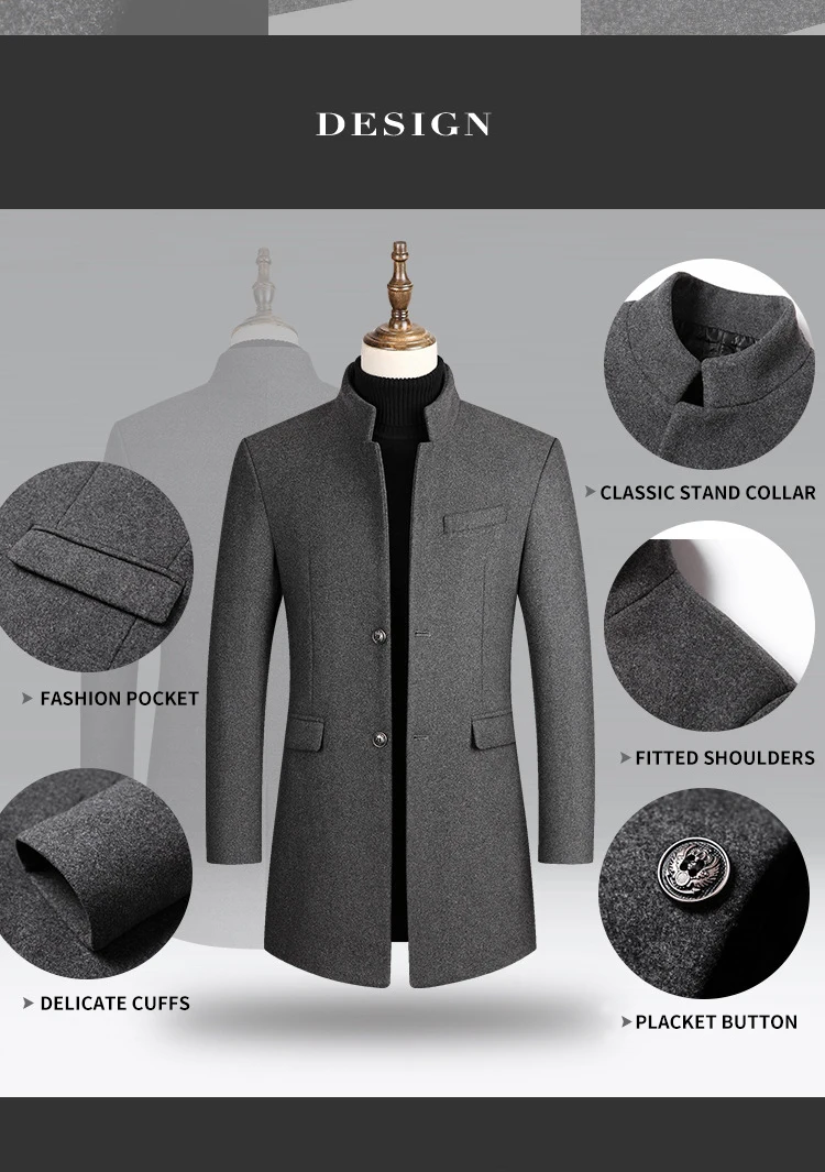 2022 Winter Man Woolen Jacket Coat Mid-Long Trench Coat Classic Solid Color Plus Thickening Men Fashion Woolen Jacket