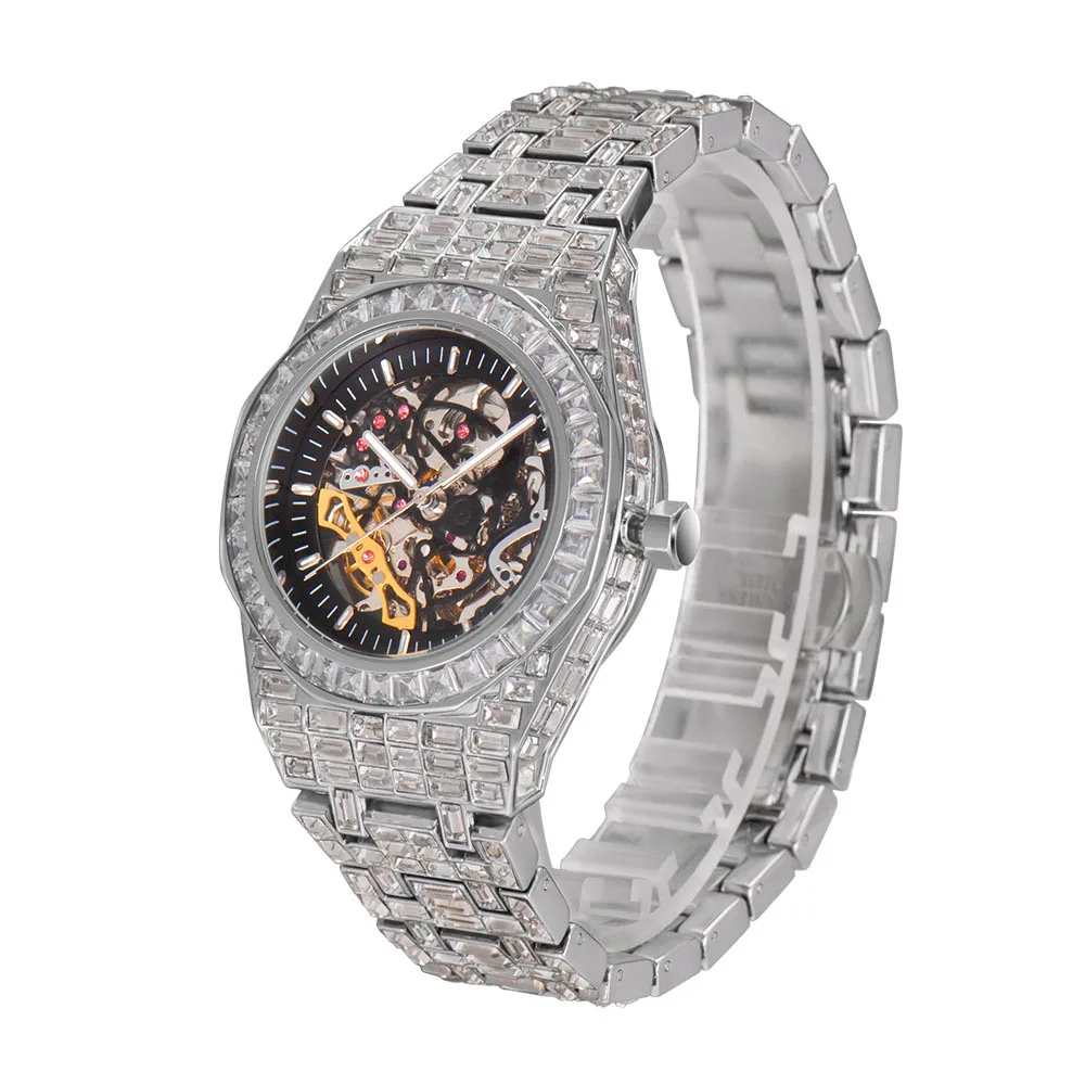 2022 Cool Mechanical Wrist Watch Luxury Rose Gold Plated Leisure Amazing Bling Bling Baguette Cut Icy Out Diamond Men Hand Watch