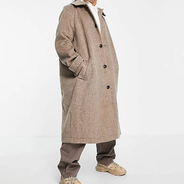 Custom Autumn Streetwear Solid Oversized Overcoat Fashion Single Breasted Wool Outwear Coat For Men