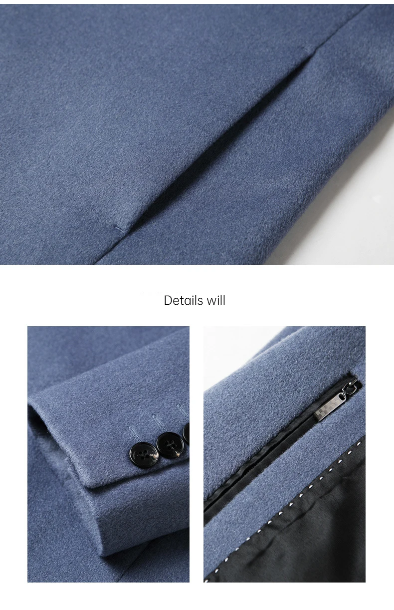Australasian Wool Single Breasted trench coat men wool Long-Sleeve Plush Peacoat men wool coat