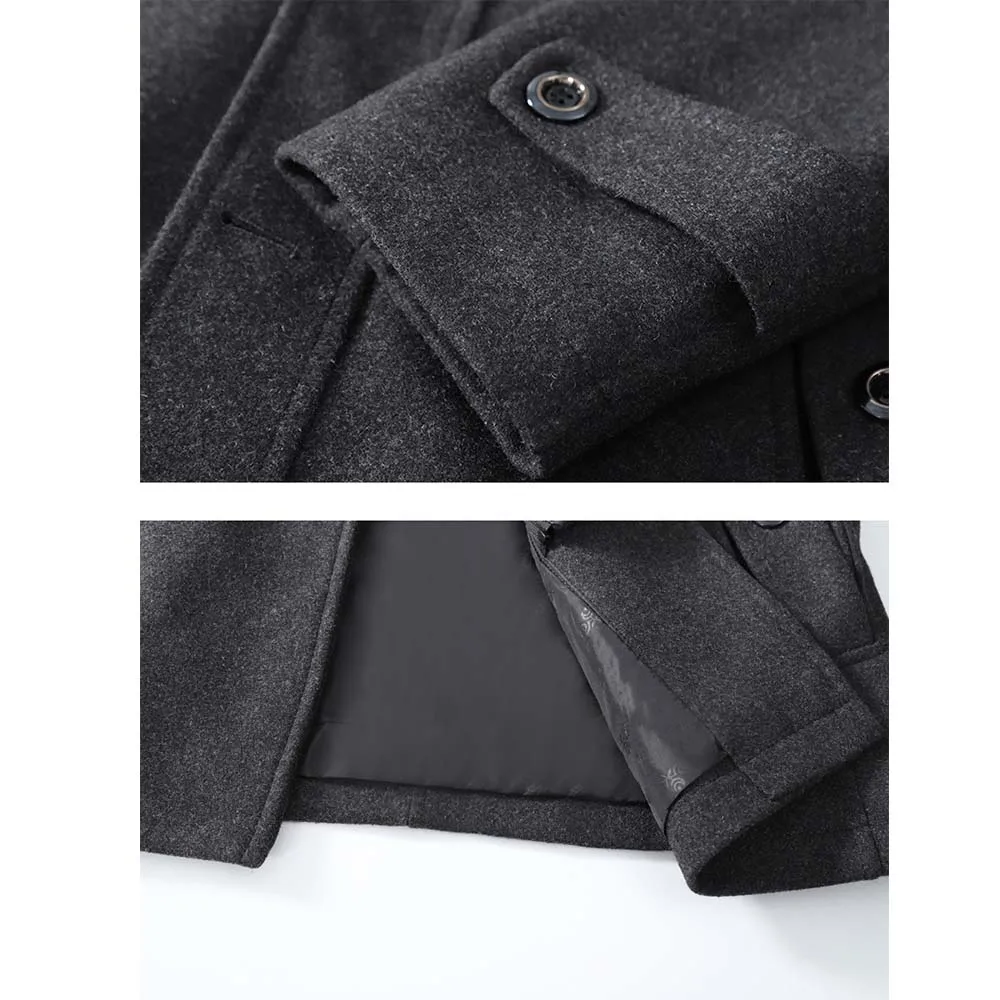 Fall winter double collar woolen men's coat casual long cotton padded men's windbreaker