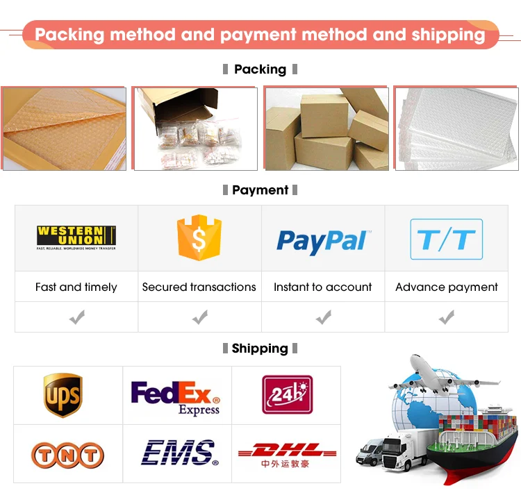 Shipment methods | DHL/TNT/FEDEX/UPS:5-7 work days delivery Epacket:10-25 work days delivery |